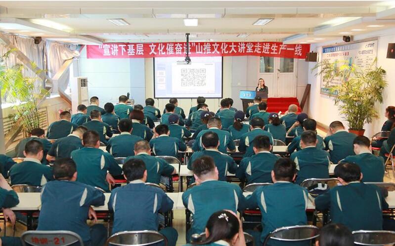 5月17日上午,一场“有思想,有温度”的宣讲,在公司履带底盘分公司轮系车间激情上演 星辰影院,围绕着山推企业文化:“客户满意是我们的宗旨”“不争第一就是在混”“一天当两天半用”,4位优秀的公司内训师,慷慨激昂,豪情满怀,各事业部,子公司党组织负责人,履带底盘分公司宣传文化联络员,各车间宣传文化联络员以及履带底盘分公司员工代表70余人参加了此次活动,。