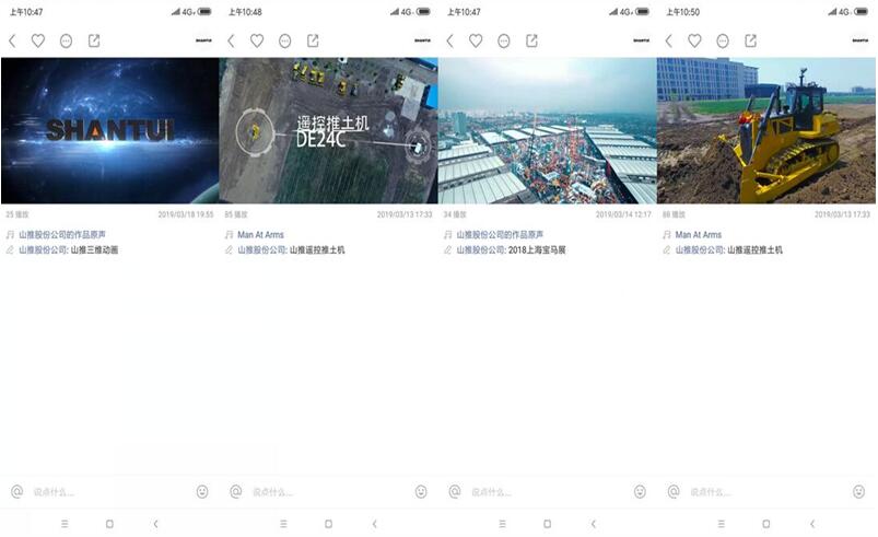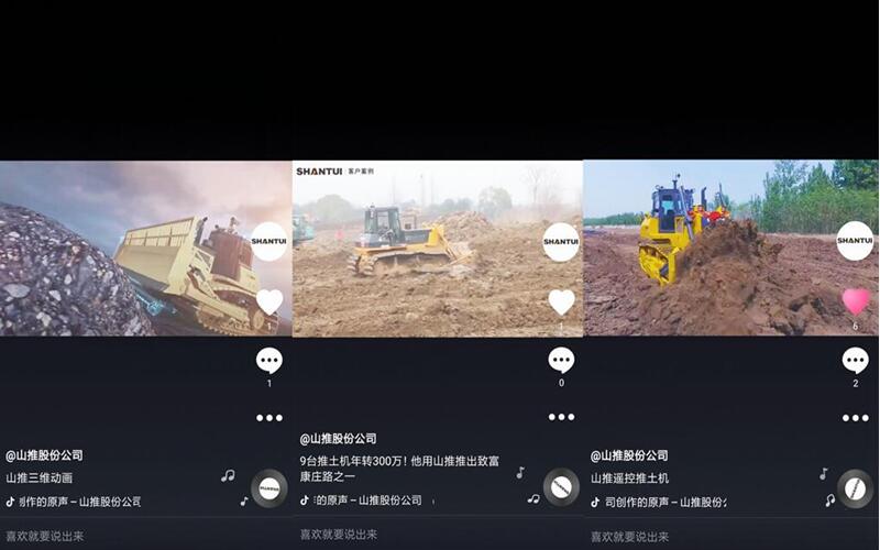 目前,公司官方抖音号和快手号已经发布了20个作品,其中包括“十年风雨兼程,山推客户关爱行护航旺季施工”“九台推土机,推出致富康庄路”“山推一体化施工”“山推遥控推土机”等一系列精彩视频,围绕着“高低快全爽”增强客户的体验感,吸引更多的客户关注山推产品,关注山推品牌,与微博,微信以图文为主的形式不同,抖音平台,快手平台的交流方式以短视频为主,时间更短,形式更直接 星辰影院在线观看,沟通路径更短,“两微一抖一快”,是当下企业开展社交媒体营销的新战场,也是不断创新的营销法则。