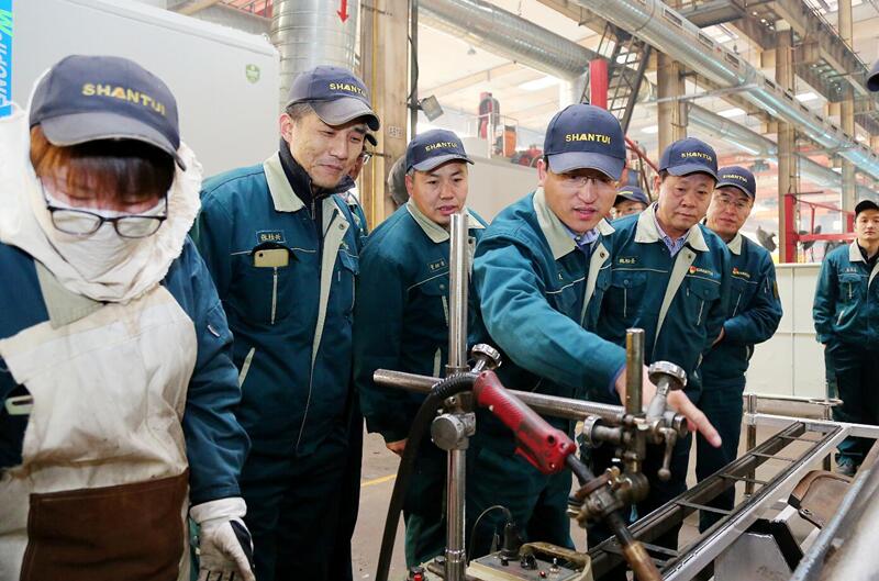 初春的山推国际事业园,雪霁初晴,暖阳如沐,2月11日,节后的第一个工作日,山推股份公司党委书记 星辰影院,总经理张民,党委副书记,副总经理魏相圣一行到推土机事业部生产现场,看望慰问节后奋斗在生产一线的干部员工,为大家送去节日问候和新春祝福,同时勉励广大干部员工要坚定信心,奋发作为,在新的一年里干出新气象,再创新业绩。