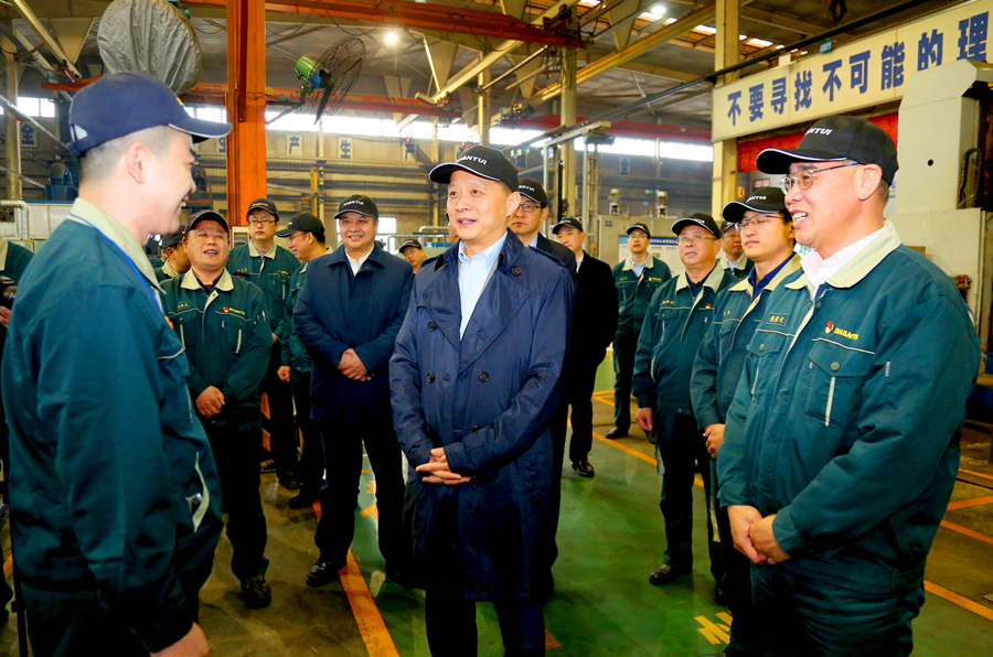 大年初五,山东重工集团总经理江奎带领班子成员刘会胜,谢树敏,徐子春,申传东等集团领导,一路风仆尘尘直奔春节期间一片繁忙的山推股份公司生产一线现场,在公司领导张秀文,孙学科,张民,安鲁琳,刘春朝等的陪同下,先后到公司履带底盘事业部日系产品车间,传动事业部变矩器车间,推土机事业部总装车间,道路机械公司装配一车间,看望慰问节日期间坚守岗位的一线员工 星辰影院,为大家送去节日问候和新春祝福,同时勉励广大干部员工新的一年里要干出新气象,再上新业绩。