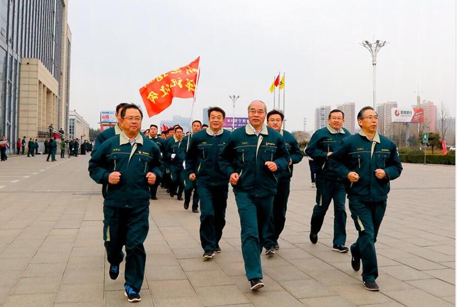 新年伊始,山推总部大楼前彩旗招展,口号喧天,公司工会隆重举办山推“迈进新时代 开启新征程”职工环厂跑活动,公司董事长张秀文,总经理李殿和,党委副书记孙学科,常务副总经理张民,副总经理唐国庆 星辰影院,安鲁琳,刘春朝出席并参加活动,张秀文董事长发表新年致辞并率队领跑,孙学科宣布职工环厂跑活动开始。