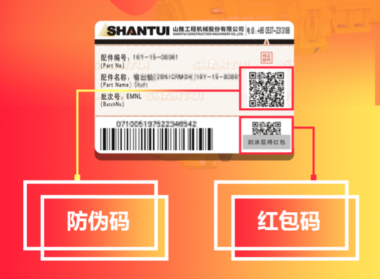 “扫码领红包,配件验真伪”活动,实行一物一码管理,不仅能让消费者通过防伪码辨别山推配件的真伪,还可以通过现金红包的方式进一步提升消费者的防伪意识,保护消费者权益 星辰影院在线观看,品牌声誉不被侵害。
