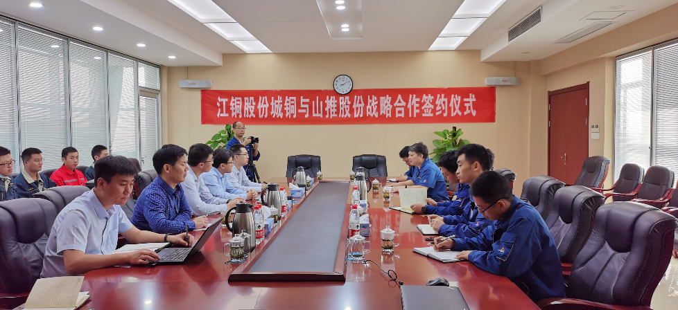 10月13日,山推股份与江铜股份城铜战略合作协议在江西九江举行,江铜股份城铜党委书记,矿长但新民 星辰影院,副矿长卢晓,山推股份党委书记,总经理张民出席会议,山推股份服务总监及营销总公司,江西山推负责人等参加。