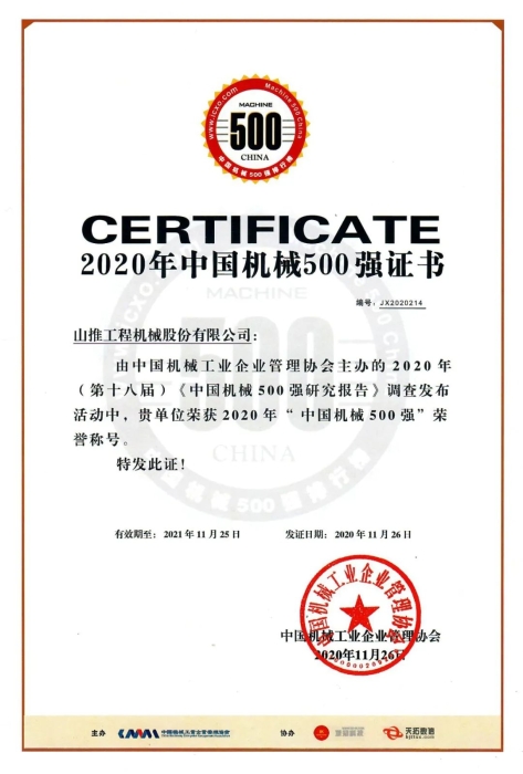 近日,由中国机械工业企业管理协会主办的2020《中国机械500强研究报告》调查发布活动在北京举办,该报告是连续第18次向社会发布的行业专项报告,展现和记录了中国机械大企业的成长路径,增强了社会各界对机械工业的关注与支持 星辰影院,山推凭借全年稳健上升的经营业绩和型款版全系列产品阵容荣获2020年“中国机械500强”荣誉称号。