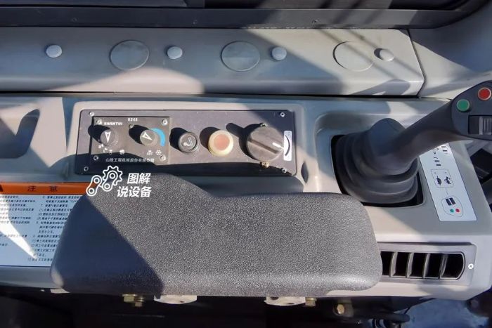 左侧为行走电控手柄,可实现“手自一体指尖换挡”功能,集变速、换向、转向于一体,操纵简单灵敏。
