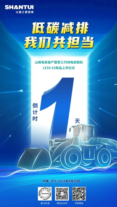 倒计时1天 | 低碳减排我们共担当 山推电装量产暨第三代纯电装载机LE59-X2新品上市仪式即将开始!