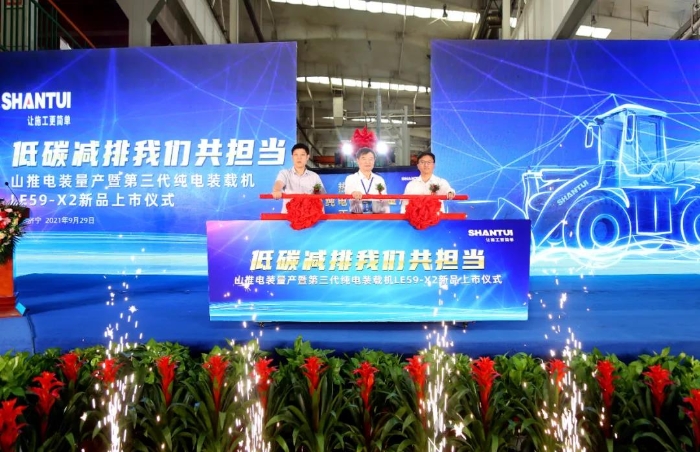 2021年9月29日 星辰影院,“低碳减排我们共担当”——山推电装量产暨第三代纯电装载机LE59-X2新品上市仪式在山东济宁隆重举行,来自山推全国各地的客户及代理商代表,员工代表及媒体等300余人,共同见证了这一历史时刻.