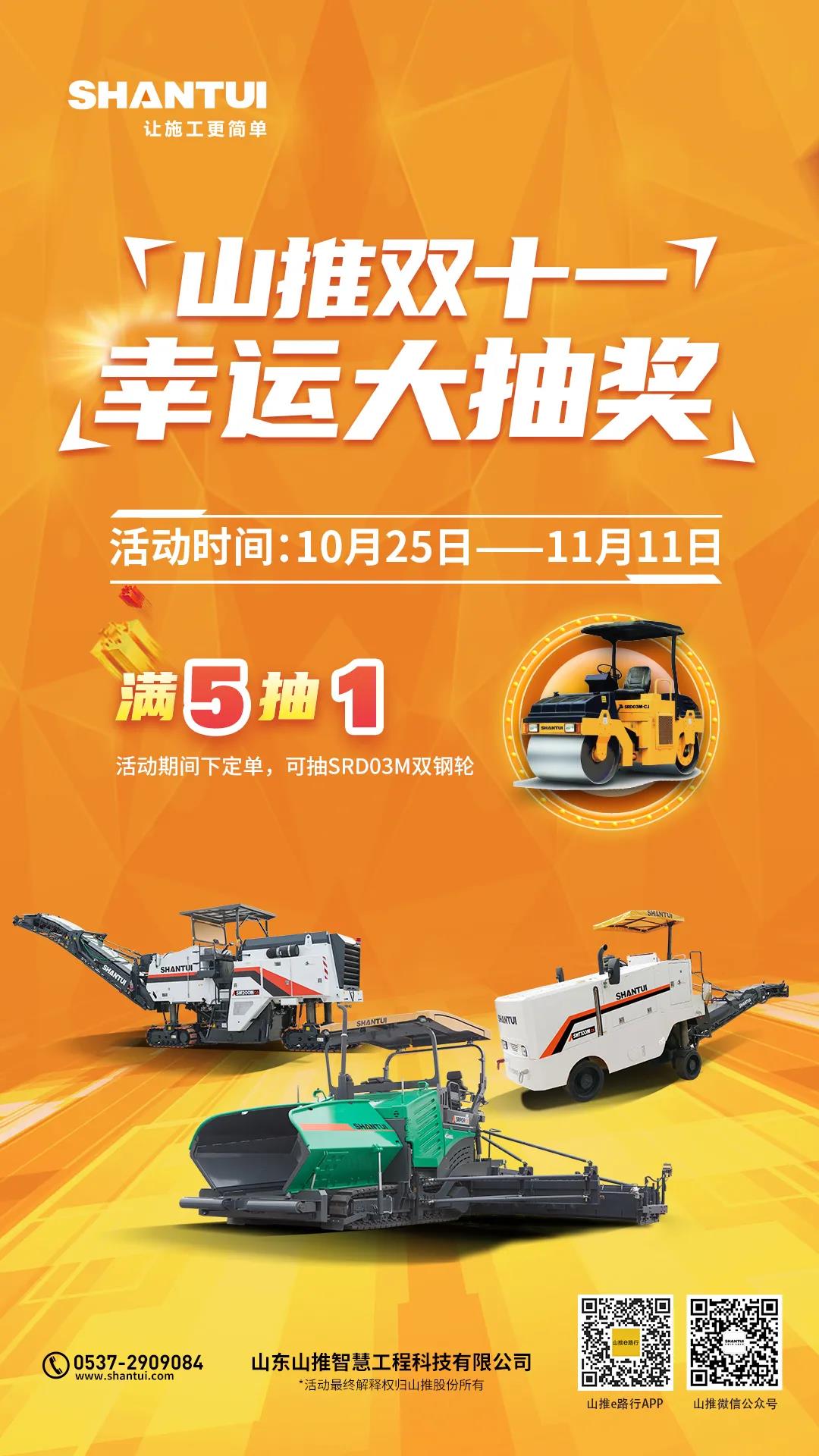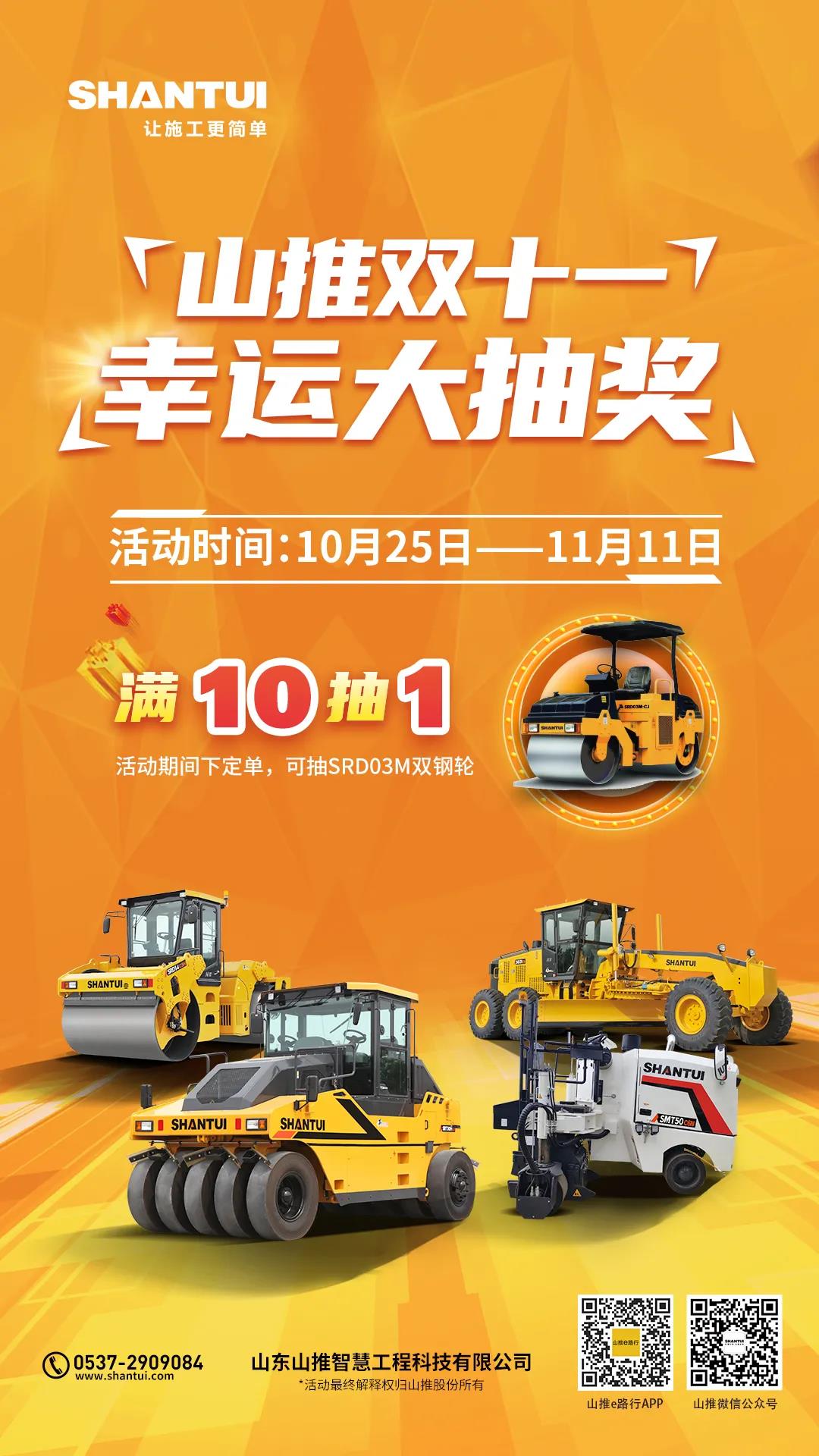 活动期间所有交定金的定单每满10个定单即可抽取1台SRD03M双钢轮压路机