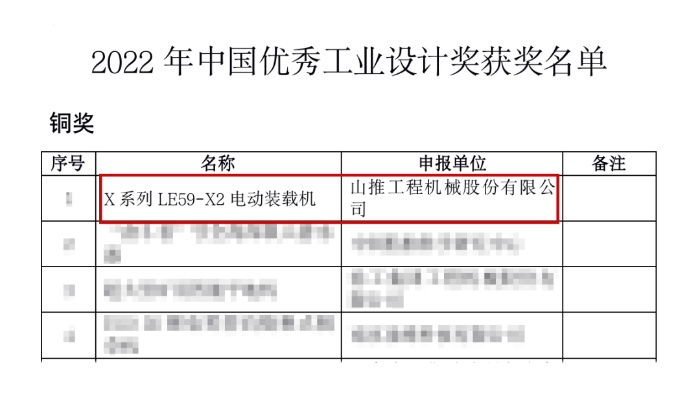 近日 星辰影院,工业和信息化部公布2022年中国优秀工业设计奖获奖名单,山推自主研发的X系列LE59-X2纯电装载机经过层层选拔脱颖而出,获评“中国优秀工业设计奖”铜奖,充分彰显了山推研发,设计创新实力。