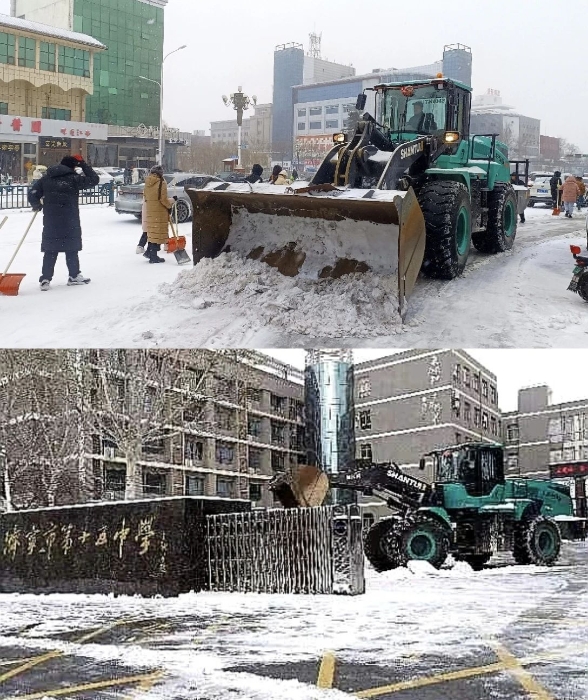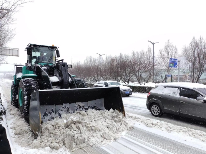 为解决市民的出行问题,山推勇担重任,紧急安排十余台纯电装载机 星辰影院在线观看,对任城区古槐路,十五中校区,高新区崇文大道,德源路,济微高速路口等主干道开展扫雪除冰作业,将路面的积雪清理得干干净净。