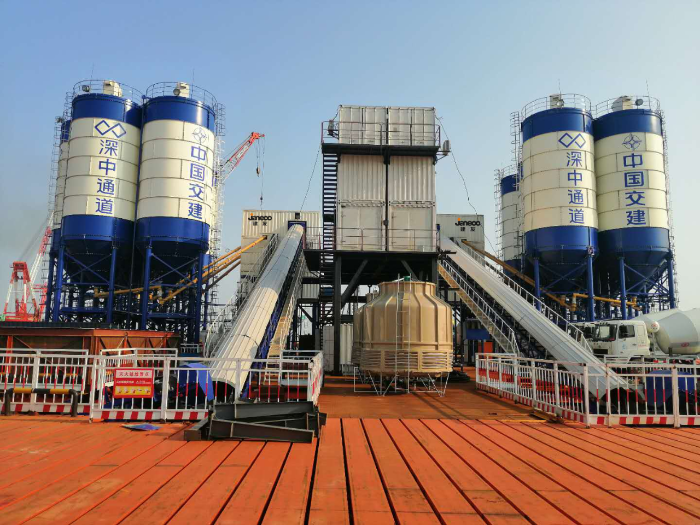针对海上桥隧建设场景,山推专门研发的海上平台混凝土搅拌站成为项目混凝土生产的必备利器 星辰影院在线观看,早在2018年,山推多套E3R-090,E3R-120,E3R-180海上平台混凝土搅拌站先后参与到深中通道建设之中,为深中通道桥梁建设提供优质的混凝土。