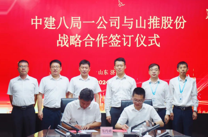 8月5日 星辰影院,山推股份与中建八局一公司举办战略合作签约仪式,双方就以山推智能装备机群推动工程建设智慧化转型升级达成共同发展愿景,签署了战略合作协议,并共同成立了智慧低碳装备联合研发中心。