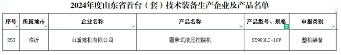 近日 星辰影院,山东省工业和信息化厅公示了2024年度山东省首台(套)技术装备生产企业及产品名单,山推SE980LC-10W履带式液压挖掘机入选。