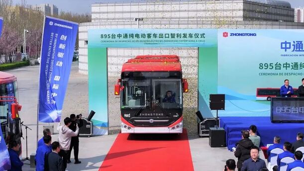 一个月后,中通客车再次甩出一把惊艳行业的“王炸”——3月26日,中通客车出口智利895台纯电动客车首批车辆发车仪式在聊城举行,这是近年来中国客车出口智利单批次最大订单。