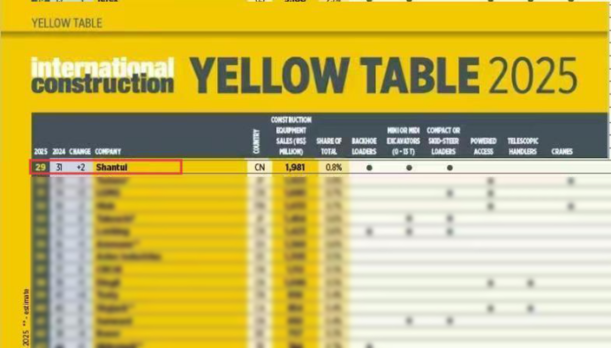 近日 星辰影院,英国KHL旗下《国际建设》杂志发布的2025年Yellow Table显示,山推股份在全球工程机械制造商排名中从2024年的第31位上升至第29位,这一跃升不仅彰显了山推股份在全球市场的竞争力,也反映了山推在2024年取得显著成绩。