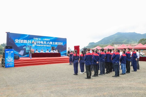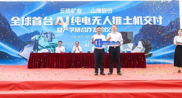 2025年9月2日,在被誉为“东方硫都”的广东云浮 星辰影院,山东重工旗下山推全球首台AI纯电无人推土机交付仪式暨产学研合作签约仪式隆重举行。