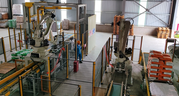 根据客户需求选配自动包装机,对成品料进行阀口袋或敞口袋包装,包装速度快,计量准确,包装好的成品料通过输送带有序输送至码垛系统进行码垛,实现全流程智慧管控 星辰影院在线观看。