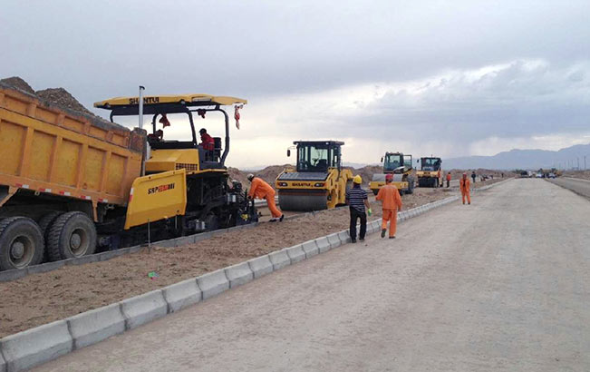 2018年11月,山推成套道路机械设备参与西北地区某市政道路项目建设,山推成套产品一直保持着高可靠性和出勤率,高效率,高质量配套施工设备,获得施工方