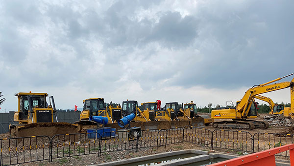 山东某大型建筑施工工地,成套采购山推系列设备,推土机,压路机,平地机等进行场平,排土作业,山推设备以动力足,质量好,效率高,故障率低赢得该工地青睐