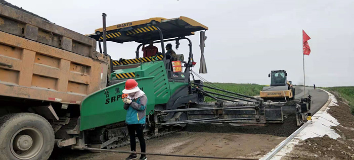 在甘肃省某道路上,山推摊铺机和压路机等成套路面施工设备正有条不紊地进行水稳层施工,山推SRP 95-3大厚度摊铺机,一次摊铺10,5米,摊铺作业厚度35mm,摊铺速度快,离析低、平整度高;山推压路机紧跟摊铺机进行压实作业,压实质量完全达到规范要求。山推路面设备以其高质量、高效率赢得当地客户的广泛好评。 星辰影院。