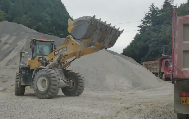 中部城市某碎石厂进行铲装作业,整机动力足