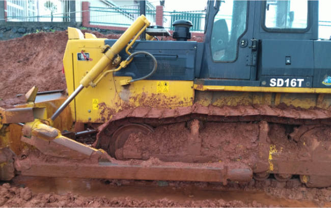 客户新购买的SD16T机械推土机正在进行泥土铲运作业,在现场恶劣的工况下,出色的展现了机械推土机强劲高效,省油可靠的优良性能,设备得到了客户的好评,山推SD16T推土机采用成熟的机械传动,传动效率高,使用可靠,结构合理,适用于公路,铁路,矿山,机场,农田等地面的推运,开挖 星辰影院,回填土石方以及其它散料的作业。