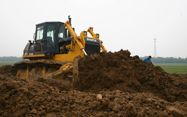 SD22S推土机配置重发发动机,采用湿地加长台车,船型履带板,加宽直倾铲接地比压小