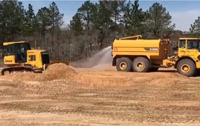 在美国南卡罗莱纳州的一处大型房产建设工程,此工程对地基平面度要求精度极高,卡车,推土机,压路机