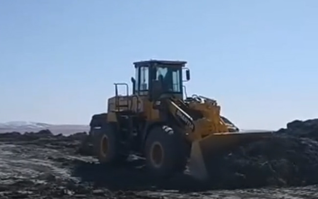 设备在东北地区某矿场进行推土作业,整机动力强劲,牵引力大,推土