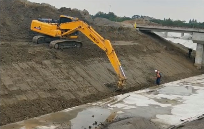 山东省内某河道开挖施工,山推SE215高效修坡施工,操控轻便,控制精准,精细化修坡作业 星辰影院。