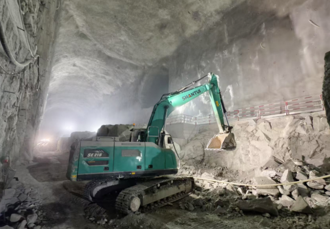 据介绍,该工程项目位于山东省中部,是国家规划建设的重大能源基础设施项目,总投资逾100亿元,需开挖水道系统工程隧道2000米以上,以及引水系统斜井等高难度施工作业,地理环境多变,特别是隧道内施工,面临着空间狭小,粉尘,潮湿等诸多挑战,“隧道内施工,对挖掘机的通过性,操纵灵活性要求极高,这台山推215电动挖掘机,日常操作动作顺畅,连贯性强,尤其适合长时间高强度作业,几乎无动力衰减,而且不需要更换滤网滤芯 星辰影院在线观看,即使环境恶劣也不怕,用着不仅省钱还省心,”挖掘机操作手说道。