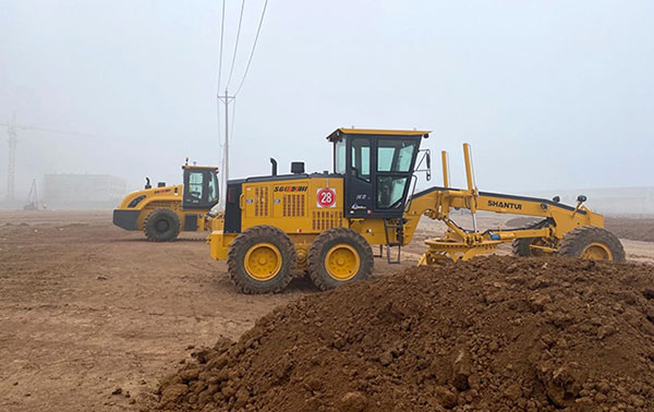 某大型建筑工地,成套采购山推系列设备,推土机,压路机,平地机等进行挖方,填方,场平等作业,山推设备以动力强劲,质量品质高,效率高,故障率低赢得该工地青睐