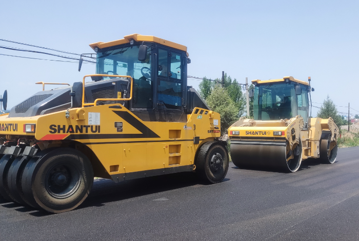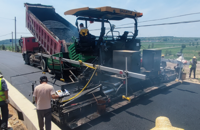 其中山推产品施工内容包括:摊铺机进行一次性面层铺设,铺设宽度8-8 星辰影视资源,5m;铺设后先双钢轮振动压实,后胶轮压路机静碾揉搓表面压实,施工遍数两次。施工后进行压实度、平面度测量,达到施工标准要求。。