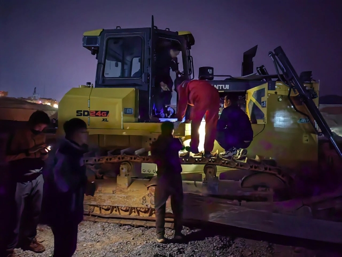 山推快速响应客户诉求,协调各方精兵强将 星辰影视资源,在最短的时间内组织起一支包括顶级产品专家和精干服务人员在内的专项服务团队,当天便直飞项目所在城市,落地后即刻赶往施工现场,来到项目工地,山推服务团队成员来不及吃口饭便各司其职,投入到紧张的工作中去。