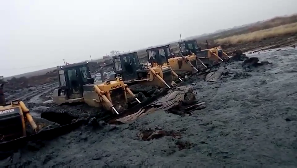 技巧五:在泥泞松软的工况推土时,推土机容易陷车,所以每铲推土量不可过大,行驶途中尽量避免停歇,换挡 星辰影院,转向和制动,必要时用2挡推土,如果遇到履带打滑的情况,可适当提升铲刀减少推土量,若推土机仍不能前进,则可挂倒挡后退。