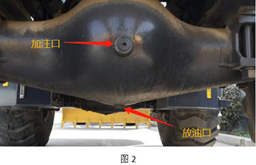 6, 工作完成后,将车辆停平稳,拉紧手制动 星辰影院,将前后桥的放油塞(图2)堵拆下,放出桥包里的油液,用备用桶收集并妥善处理,将塞堵清理干净。